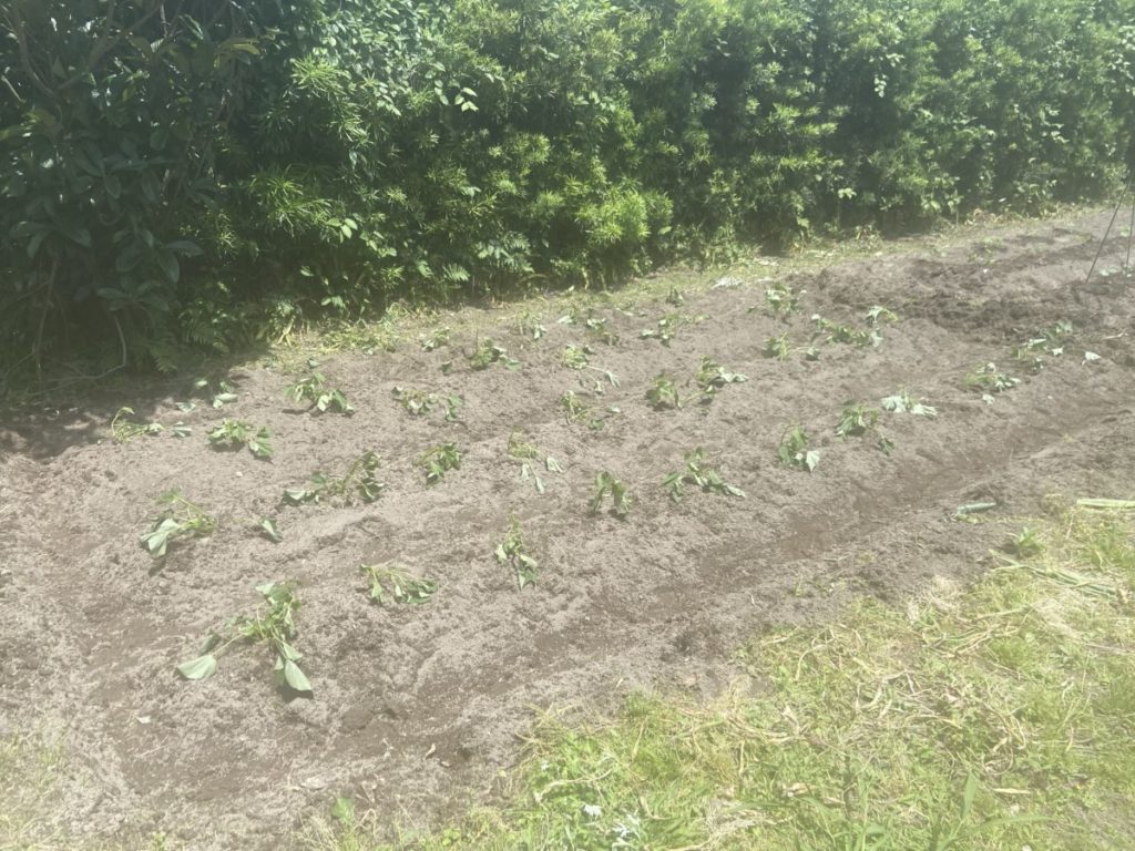 さつまいもも植えました。少し近めで、たて植えにしました。
