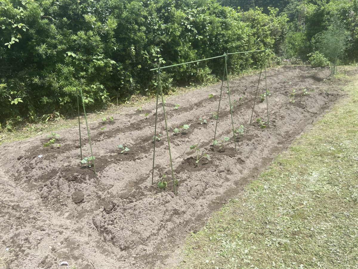 その後に、きゅうりとにがうりを植えました。支柱が、足りなかったので、次の機会にたてる予定です。