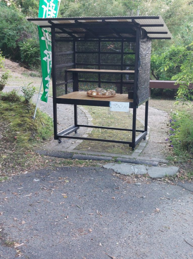 販売の時間になったら、えっちらおっちら台を抱えて運び、陽が当たらないところに設置します。でも時間が経つと陽が当たるので、また台を抱えて陽が当たらないところへ移動する。